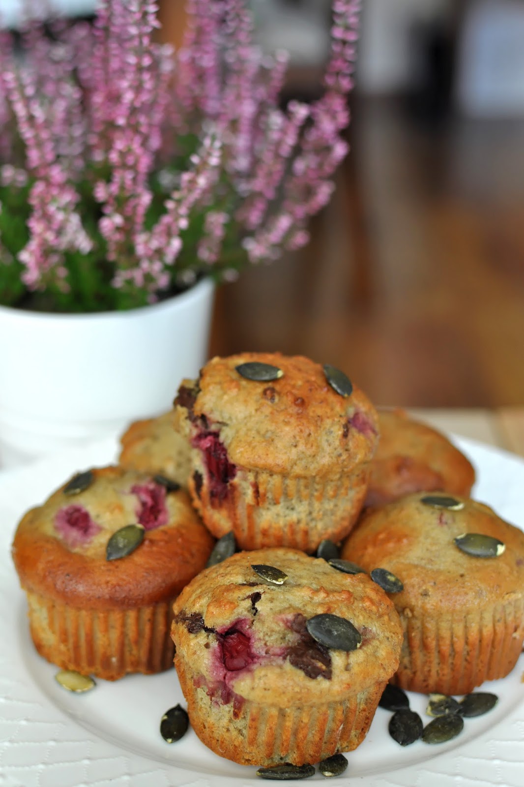 Muffiny z mąką dyniową, czekoladą i wiśniami
